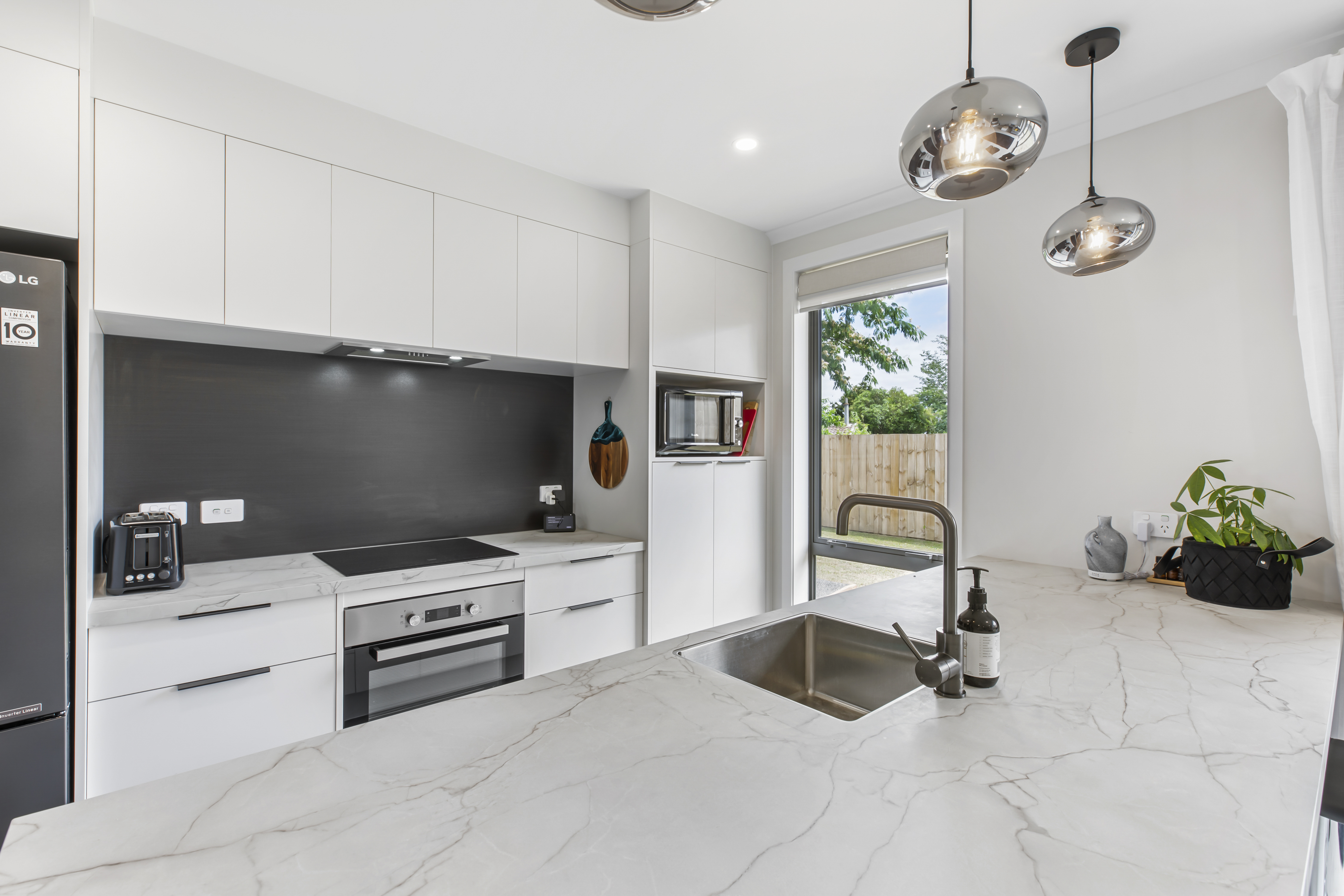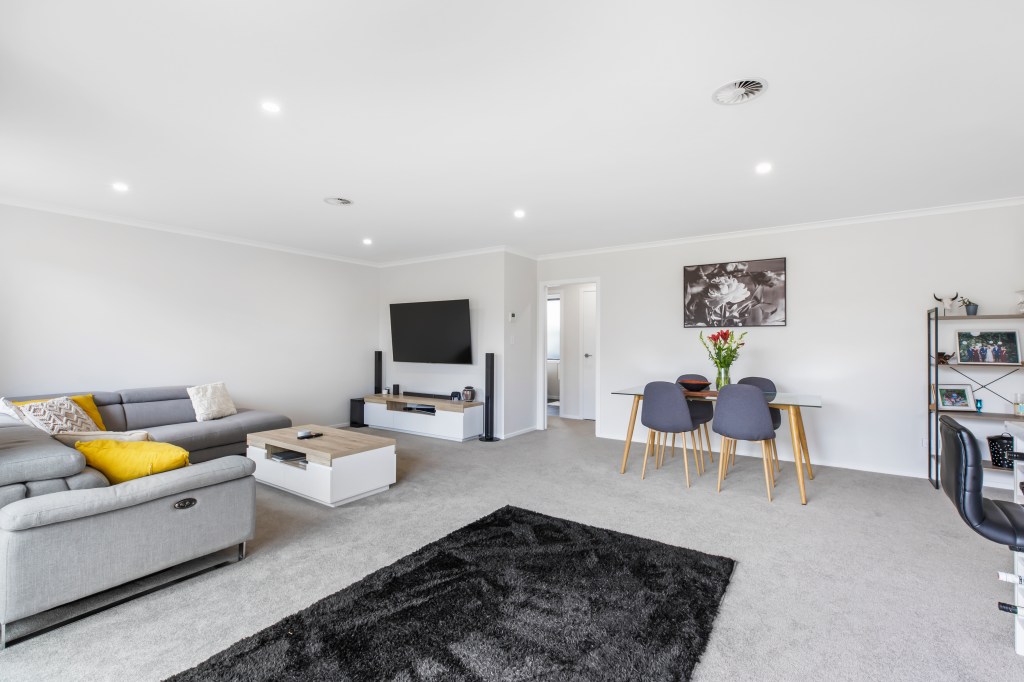 Come on in and take a look around. The front entrance leads you nicely into the sunny and light living area. This is just the right size with lots of space for a family dining table, big comfy lounge suite and easy access out to the grassed yard. It feels like a great family-friendly space where you can really relax and unwind.