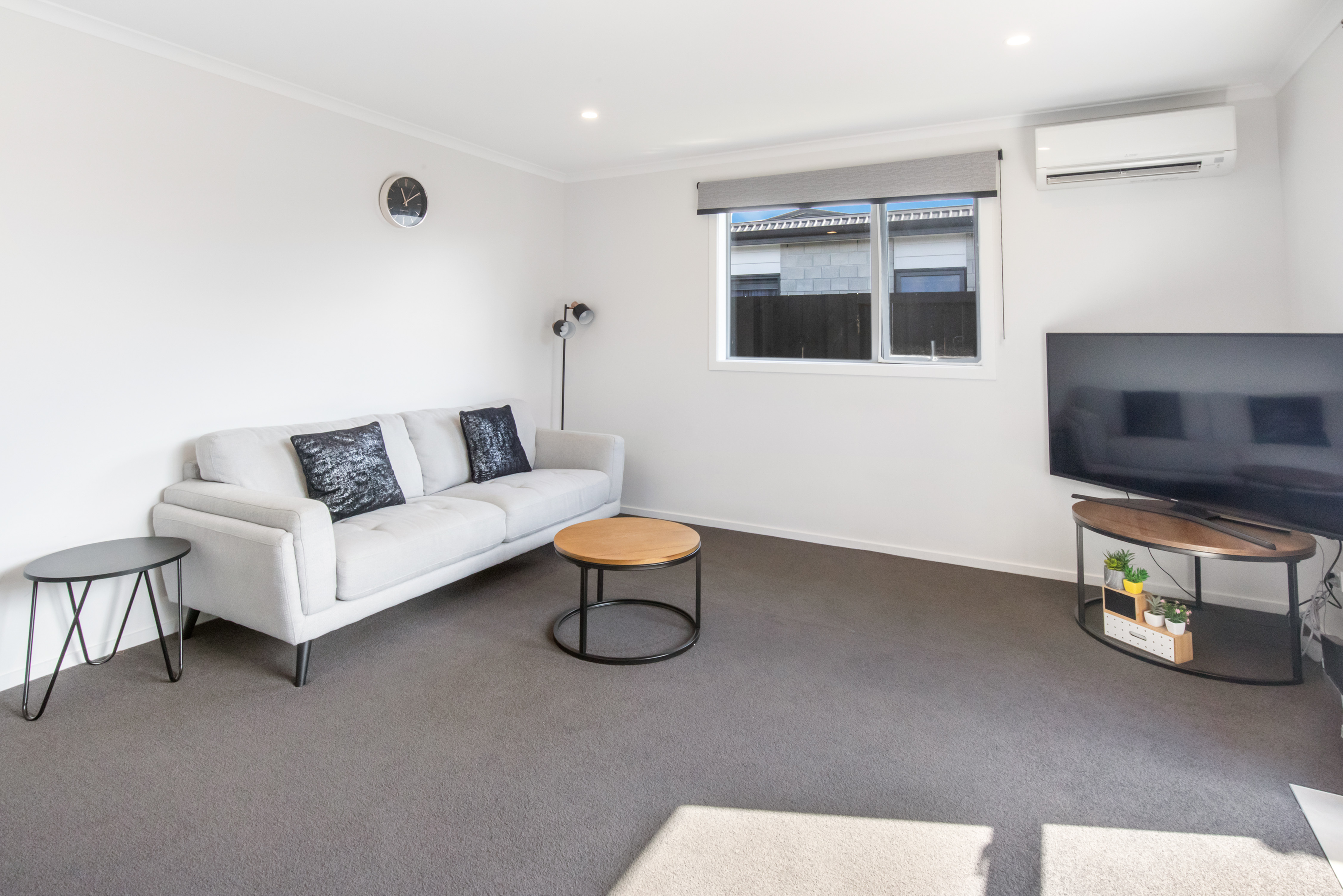 There’s a heat pump in the lounge to keep you comfortable year round, fresh light walls which will be perfect for displaying your favourite artwork and lots of room for a large comfy lounge suite. It opens out nicely to the back yard and deck too.