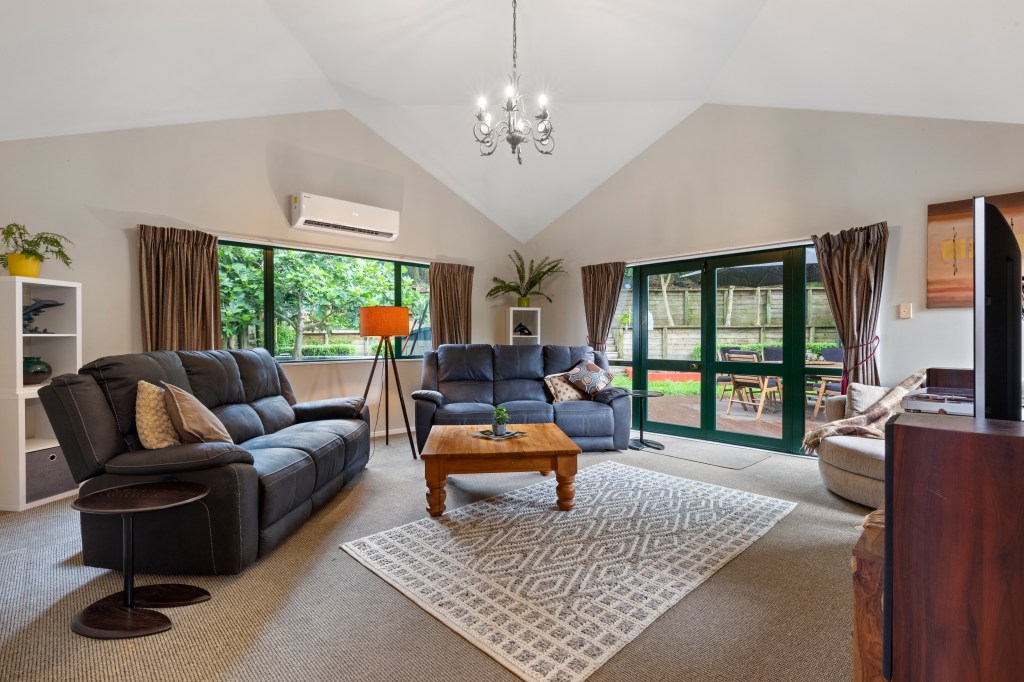 Large families will love having so much space to spread out and relax, the main living area is lovely and spacious with gorgeous angles and lots of natural light. The lounge is the ultimate family-friendly space, it’s warm and cosy with a heat pump for year round comfort, and it opens out perfectly to a private entertainment area.