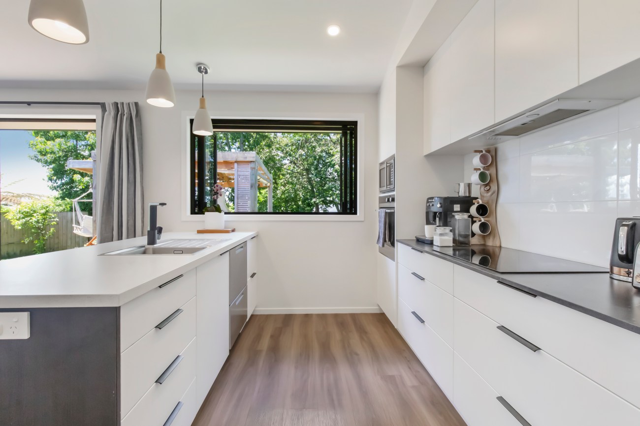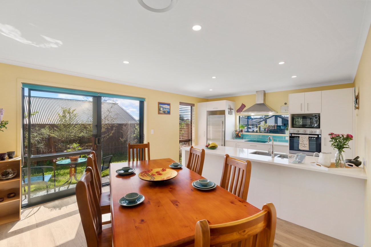 The home features an open-plan dining area that effortlessly connects to the inviting pool area for the warm summer nights or the adjoining 38° heated spa pool a perfect retreat during winter, the home’s contemporary design extends into the second living area, which opens up to this private outdoor haven. Comfort is ensured year-round with a heat pump and HRV system.